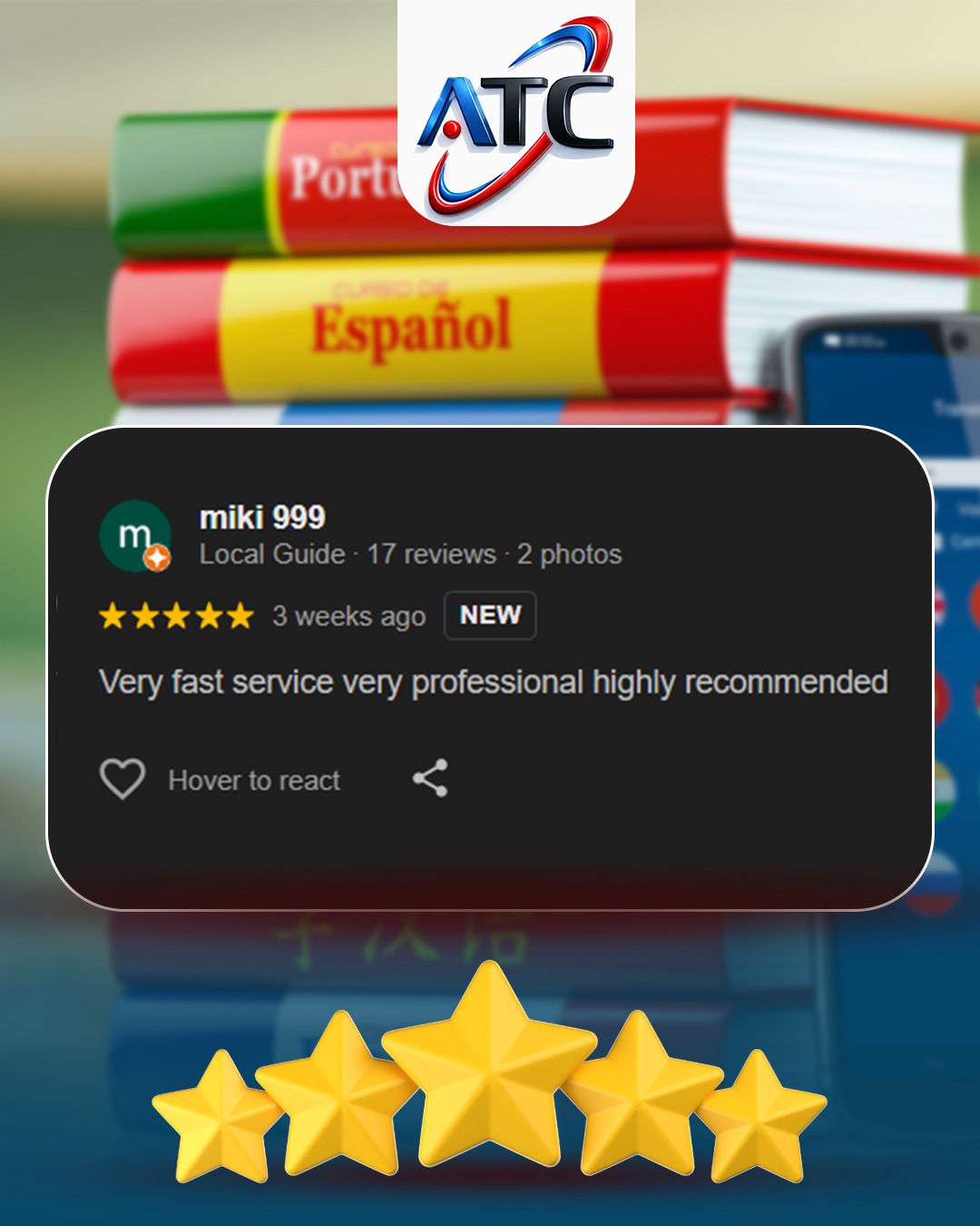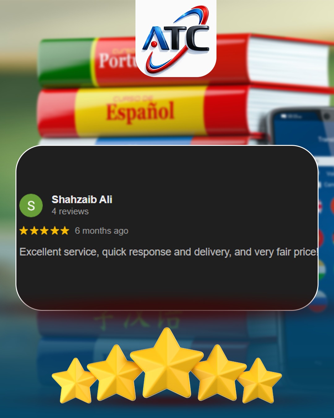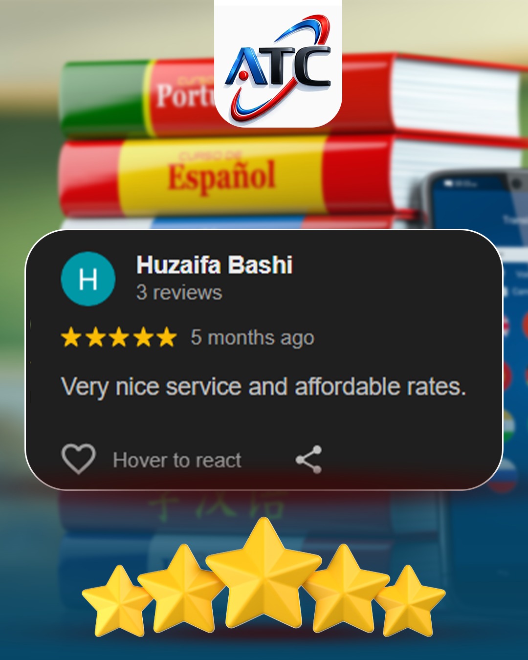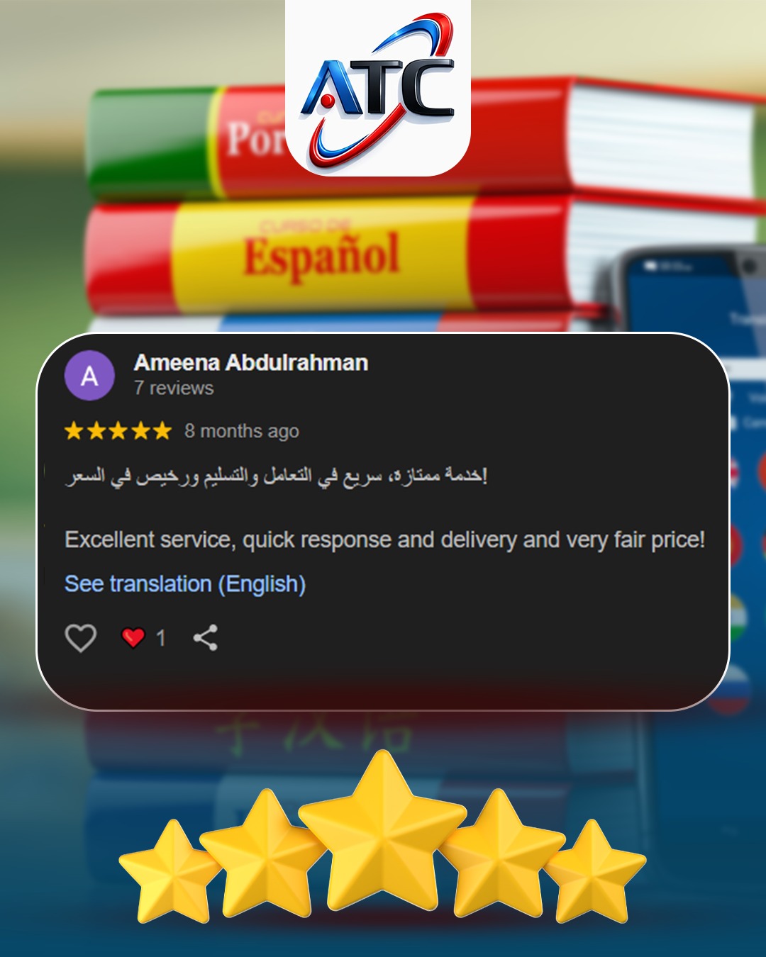 "خدمة ترجمة ممتازة، خاصة في ترجمة الوثائق الرسمية والشهادات. سرعة ودقة في نفس الوقت."